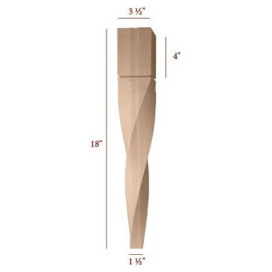 18" Helix Medium Double Twist Tapered Furniture Leg - Left