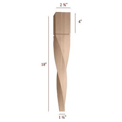18" Helix Slender Double Twist Tapered Furniture Leg - Right