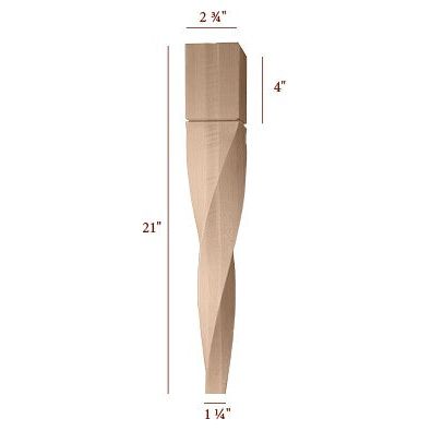 21" Helix Slender Double Twist Tapered Furniture Leg - Left