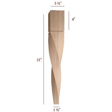 21" Helix Medium Double Twist Tapered Furniture Leg - Right