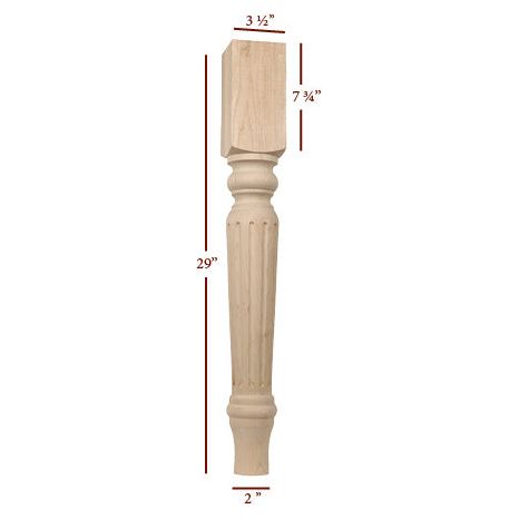 Harvest Series, 3-1/2" x 3-1/2" x 29" , Fluted Furniture Leg