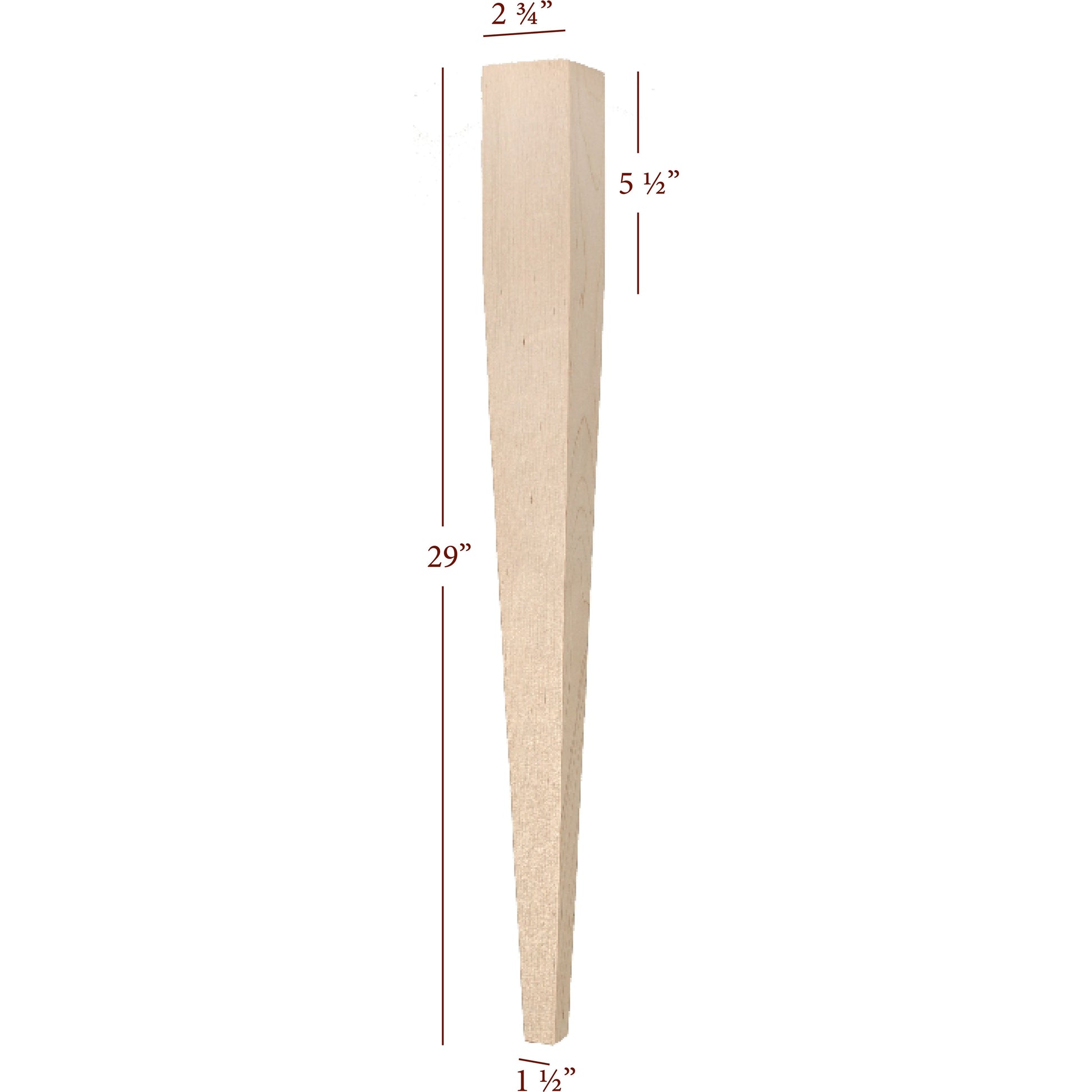 Cosmo Series , 2-3/4" x 2-3/4" x 29" , Four Sided Taper Furniture Leg